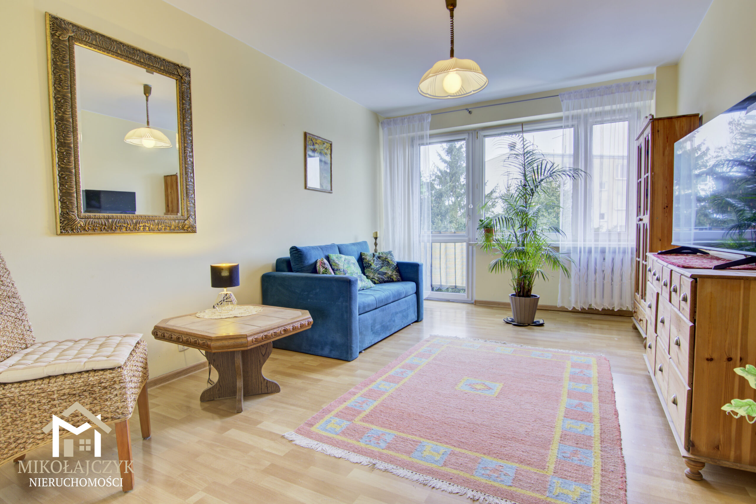Na sprzedaż 2 pokojowe mieszkanie położone na trzecim piętrze w bloku. Powierzchnia użytkowa wynosi 48,47 m2, na którą składają się dwa pokoje, kuchnia z jadalnią, łazienka z wc oraz przedpokój. Mieszkanie posiada również balkon.