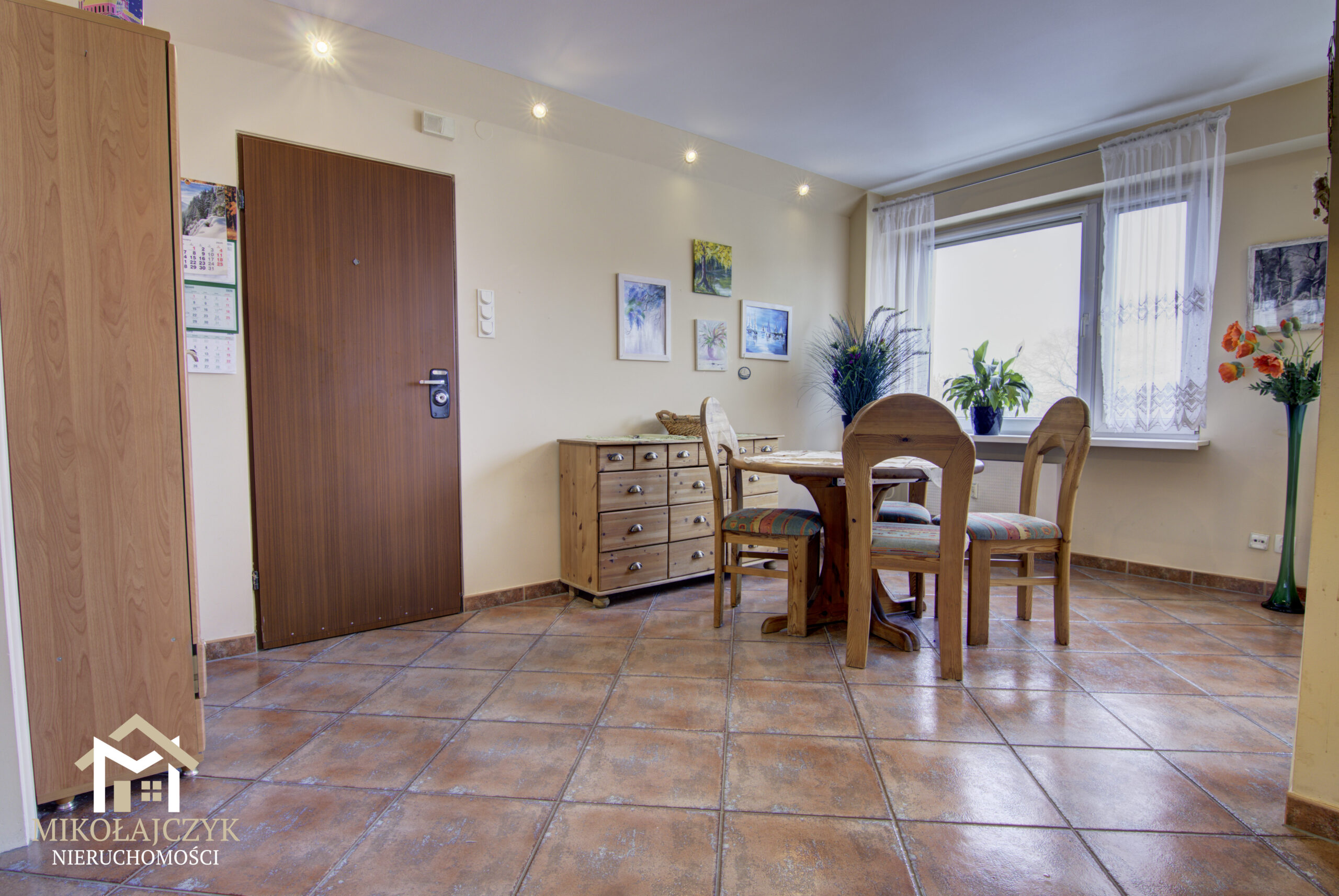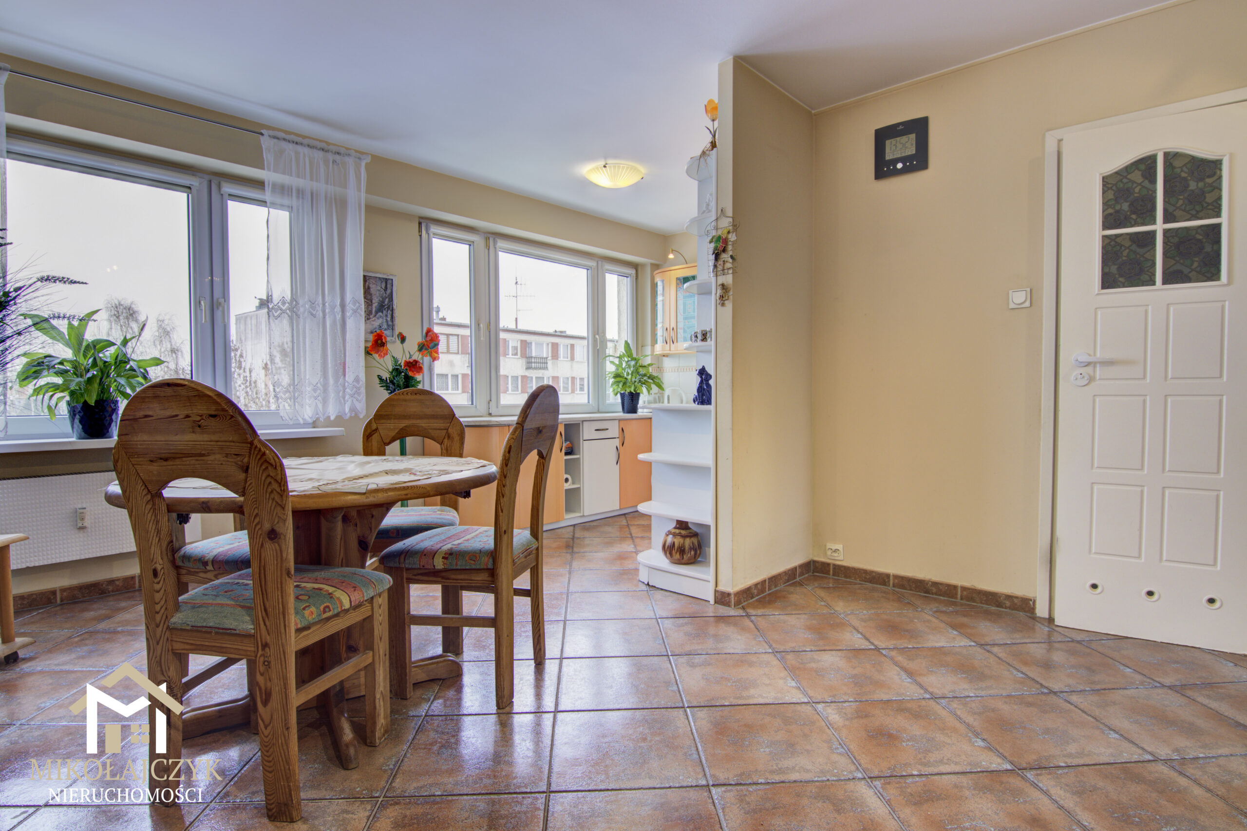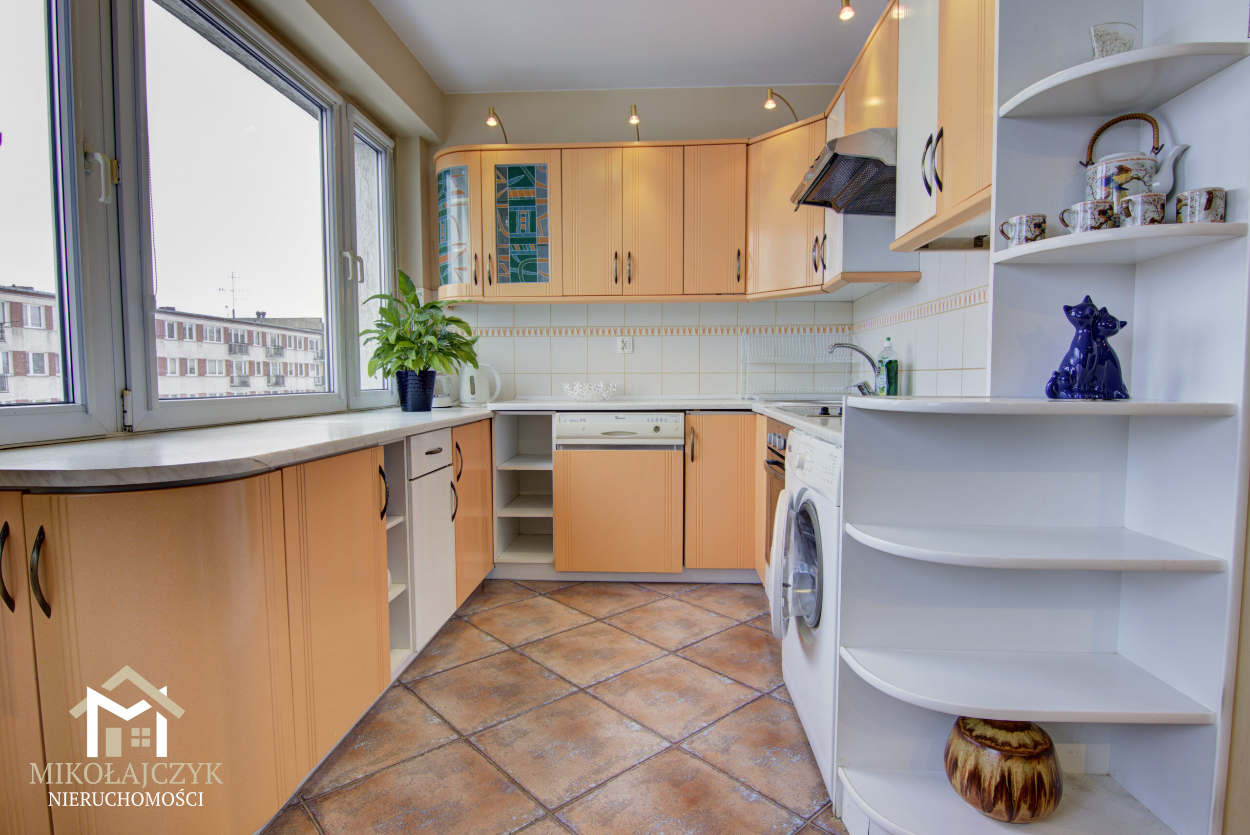 Mieszkanie jest bardzo jasne i przestronne. Wyburzenie ściany działowej i otwarcie kuchni na jadalnię sprawiło, że w mieszkaniu czuć większą przestrzeń. Mieszkanie jest umeblowane i może zostać sprzedane z widocznym wyposażeniem.