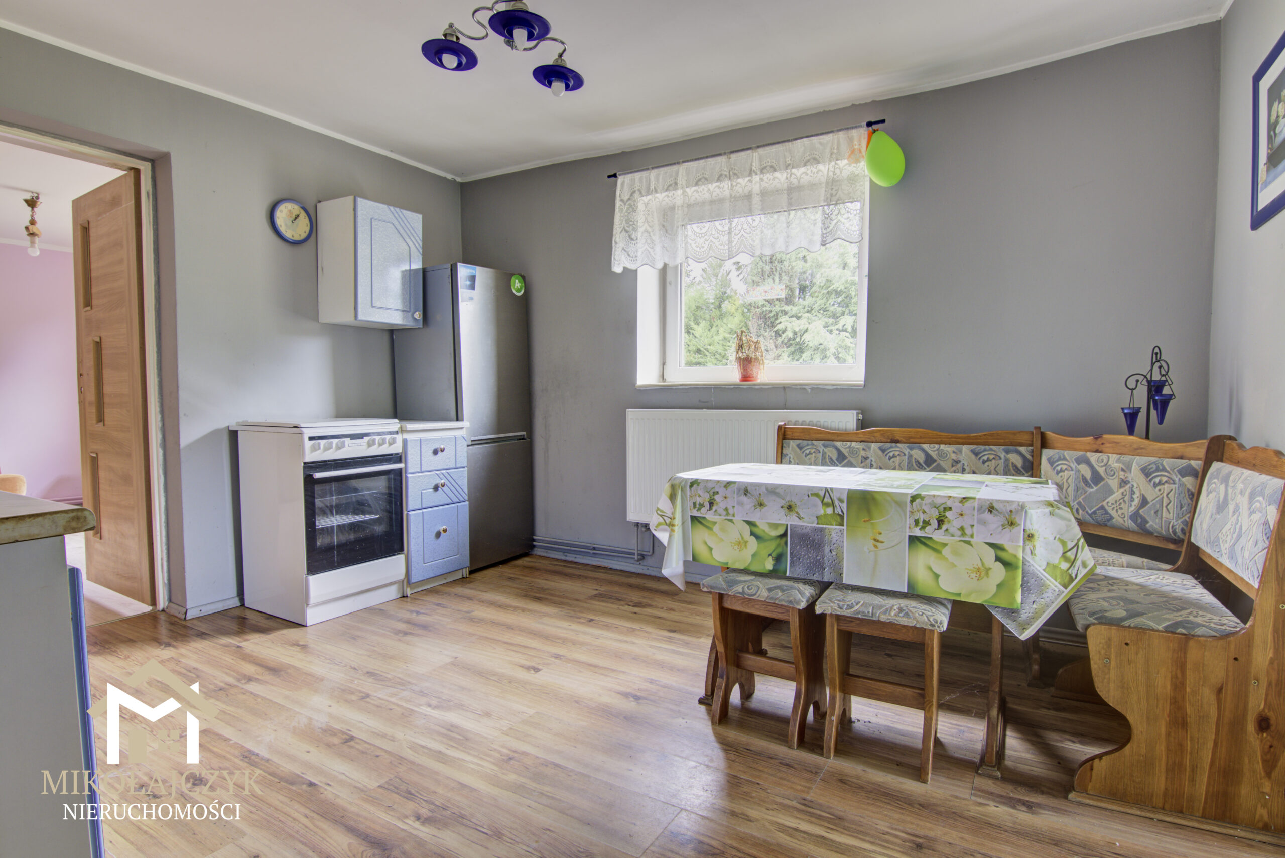Dom wolnostojący, parterowy z poddaszem nieużytkowym posiada powierzchnię użytkową wynoszącą ok. 110 m2, na którą składają się 4 pokoje, kuchnia, łazienka z wc oraz przedpokój. Dom jest częściowo podpiwniczony.