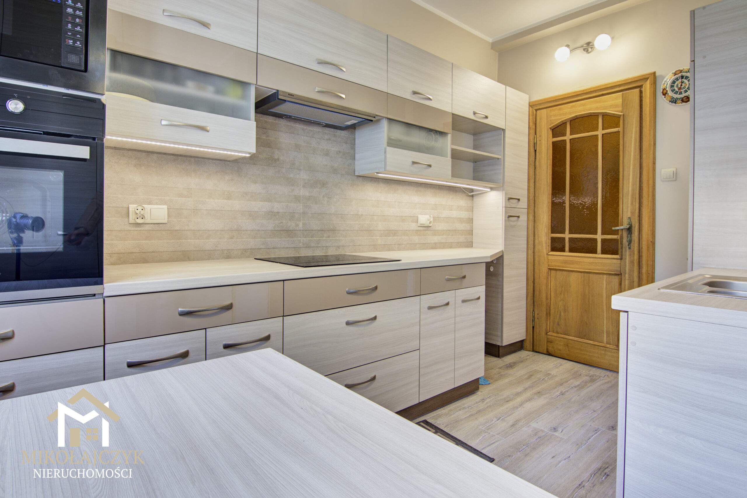 W ostatnim czasie przeprowadzony został remont kuchni wraz z zabudową, w której znajdują się wszystkie sprzęty tj.: zmywarka, lodówka w zabudowie, piekarnik, mikrofala oraz płyta indukcyjna. Prezentowana nieruchomość to idealna propozycja dla miłośników niebanalnych wnętrz, pasjonatów ogrodnictwa i spędzania czasu na świeżym powietrzu.