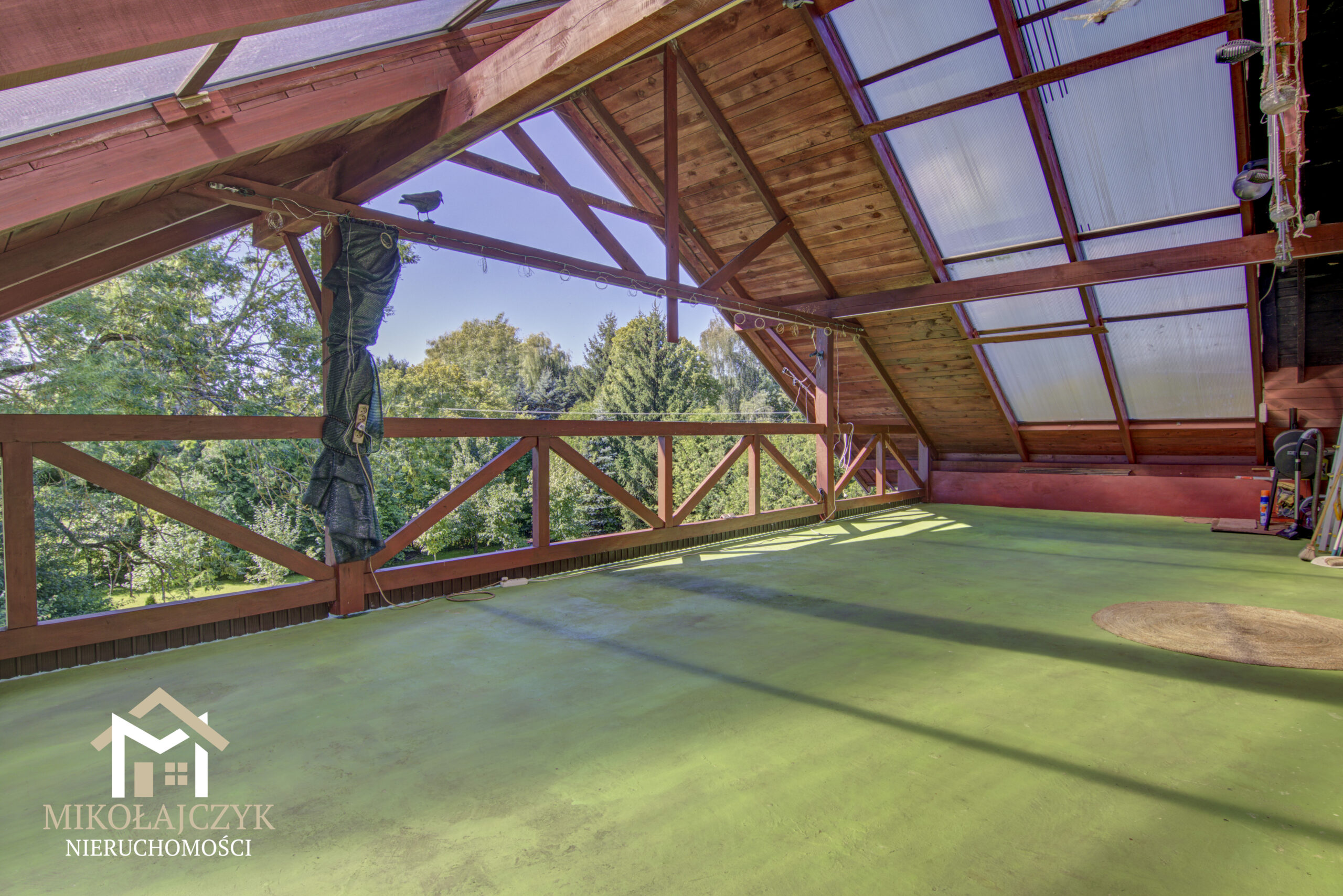 Nieruchomość została zaadaptowana z budynku gospodarczego na poddaszu urządzono część mieszkalną, natomiast parter pełni funkcję pomieszczeń gospodarczych i garaży. Cały budynek posiada powierzchnię wynoszącą ok. 411 m2, na którą składają się: