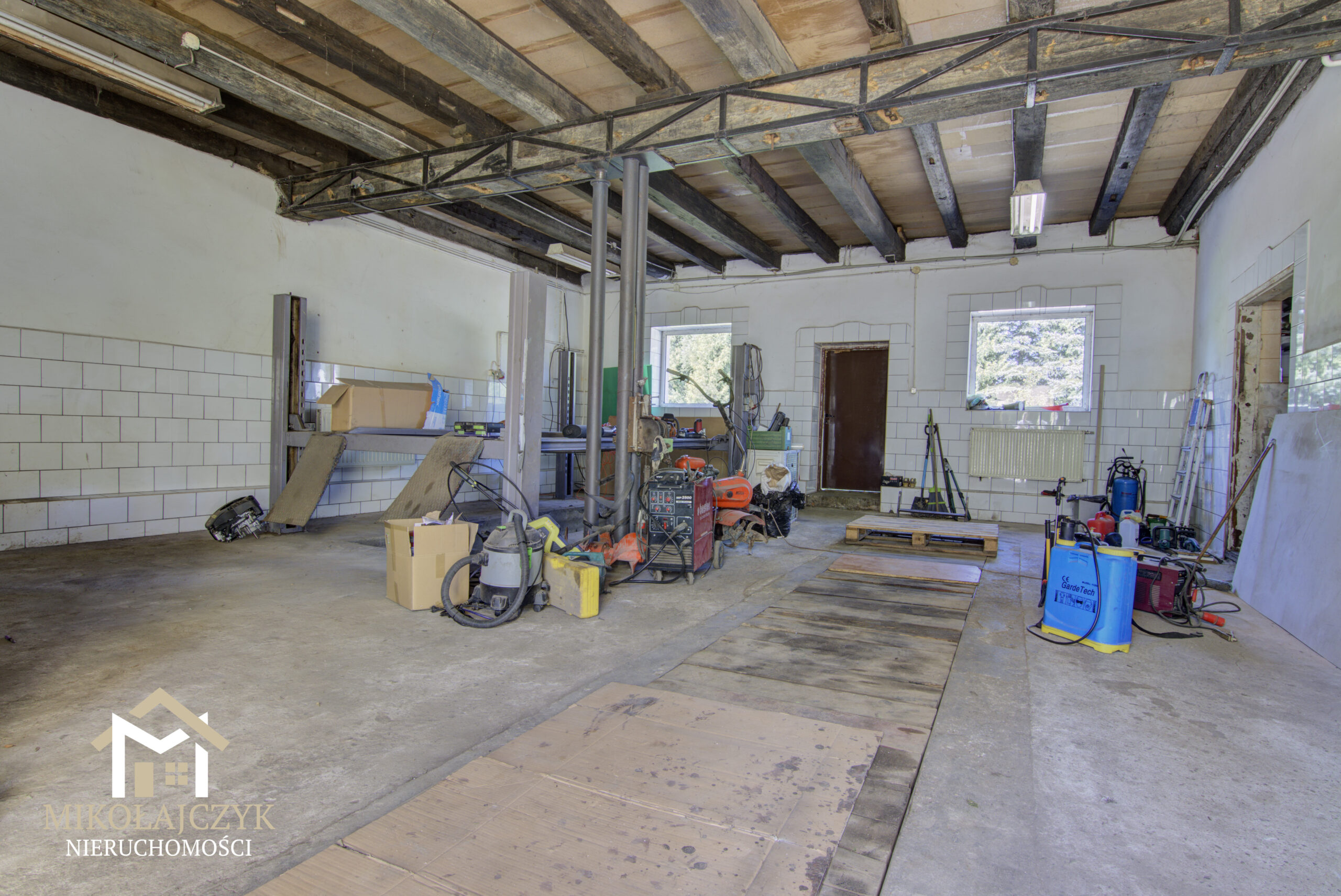Parter domu to garaże oraz szereg pomieszczeń gospodarczych. W jednym z nich znajduje się kanał oraz duży podnośnik samochodowy. Dzięki temu przestrzeń może być wykorzystywana do działalności gospodarczej typu warsztat samochodowy lub niewielka produkcja.